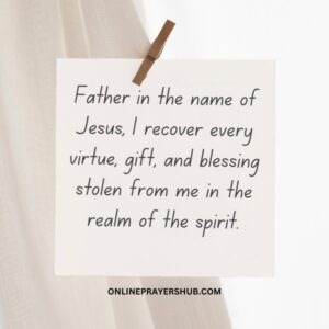 13. Father in the name of Jesus, I recover every virtue, gift, and blessing stolen from me in the realm of the spirit.