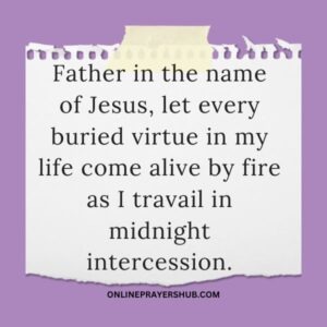 25. Father in the name of Jesus, let every buried virtue in my life come alive by fire as I travail in midnight intercession.