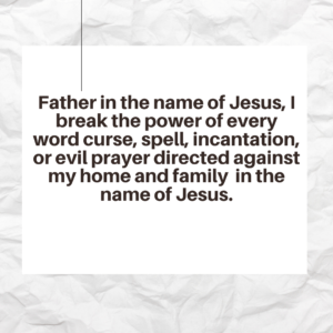 14. Father in the name of Jesus, I break the power of every word curse, hex, spell, incantation, or evil prayer directed against my home and family; I return these assignments to their senders sevenfold and shield my household with Your protective covering in the name of Jesus.