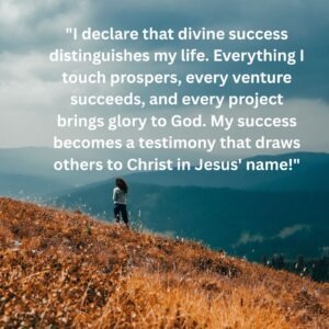 “I declare that divine success distinguishes my life. Everything I touch prospers, every venture succeeds, and every project brings glory to God. My success becomes a testimony that draws others to Christ in Jesus’ name!”
