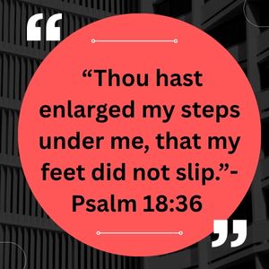 - Psalm 18:36 “Thou hast enlarged my steps under me, that my feet did not slip.”