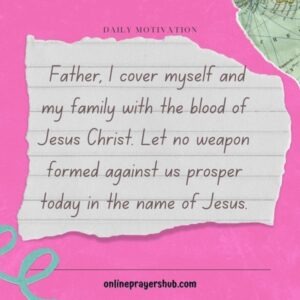 1. Father, I cover myself and my family with the blood of Jesus Christ. Let no weapon formed against us prosper today in the name of Jesus.